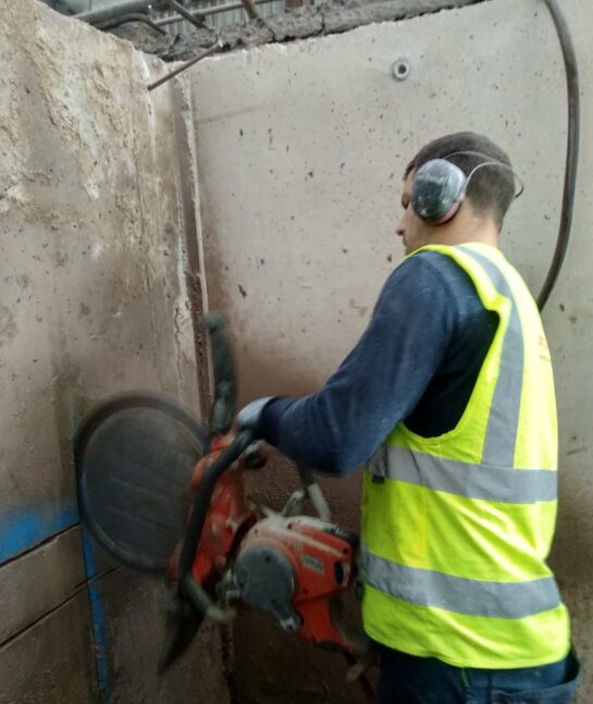We operate a number of Hi Frequency Electric/Hydraulic & 2 stroke petrol Handsaws & Ringsaws, achieving a maximum cutting depth of 330mm. Hydraulic/High Frequency Hand Saws can cut to a depth of 150mm, these saws are used when ventilation is limited and petrol fumes cannot be exhausted. A Hydraulic/high frequency ring saw has a cutting depth of 330mm. The advantage of this is that the ring saw can cut deeper from one side where access is not available from both sides or the slab depth is greater than 150mm.