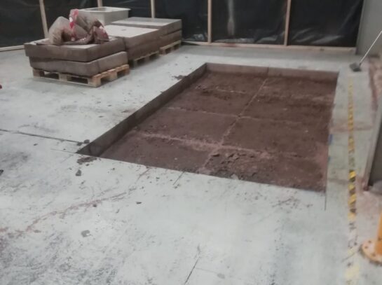 On this project we were asked by the client to remove 600sqm of reinforced concrete 8" thick inside an existing factory. We used one of our electric floor saws to cut the slab into even blocks to be removed with a forklift. This machine emits no fumes therefore no harm to the operator or nearby workers.