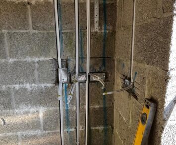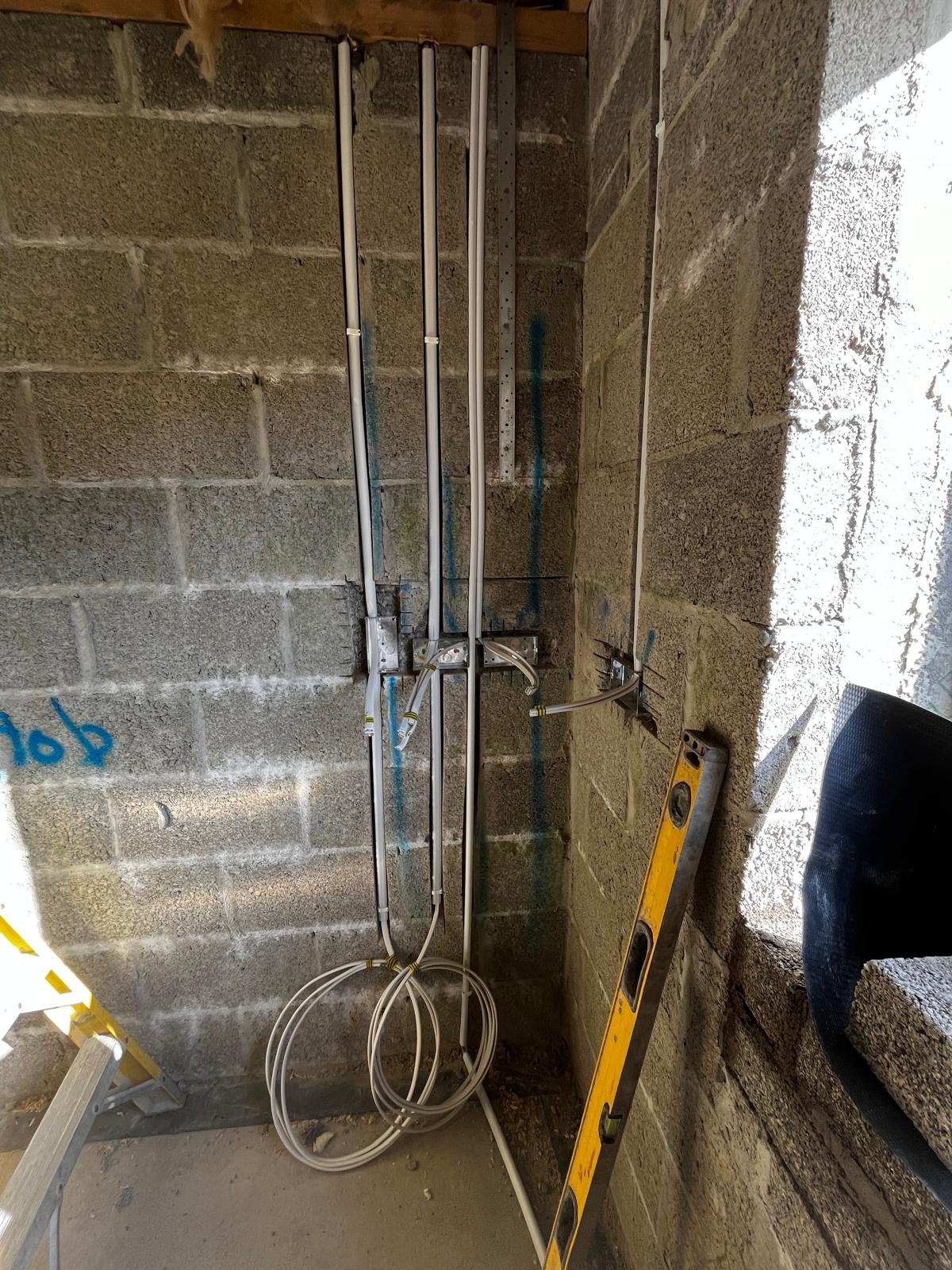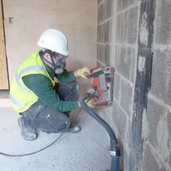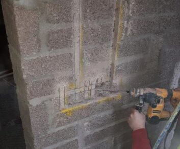 Wall chasing is a cut carried out on brick/block or concrete using a specialised power tool for cutting narrow grooves in walls, for instance when laying electrical cable.