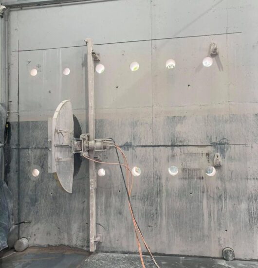 We provide concrete wall sawing services. Wall sawing is also referred to as Track sawing. It is the fastest and most precise method of concrete sawing for door and window openings or reinforced concrete walls or floors.